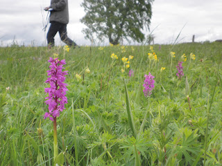 Kungsmarkens flora har blivit mindre yppig när vi kommer in i juli, några enstaka Jungfru Maria nycklar finns, ståtliga borstar (borsttistel el brudborste?) lyser upp ängarna, fält av smörblommor och älgört, mm.
